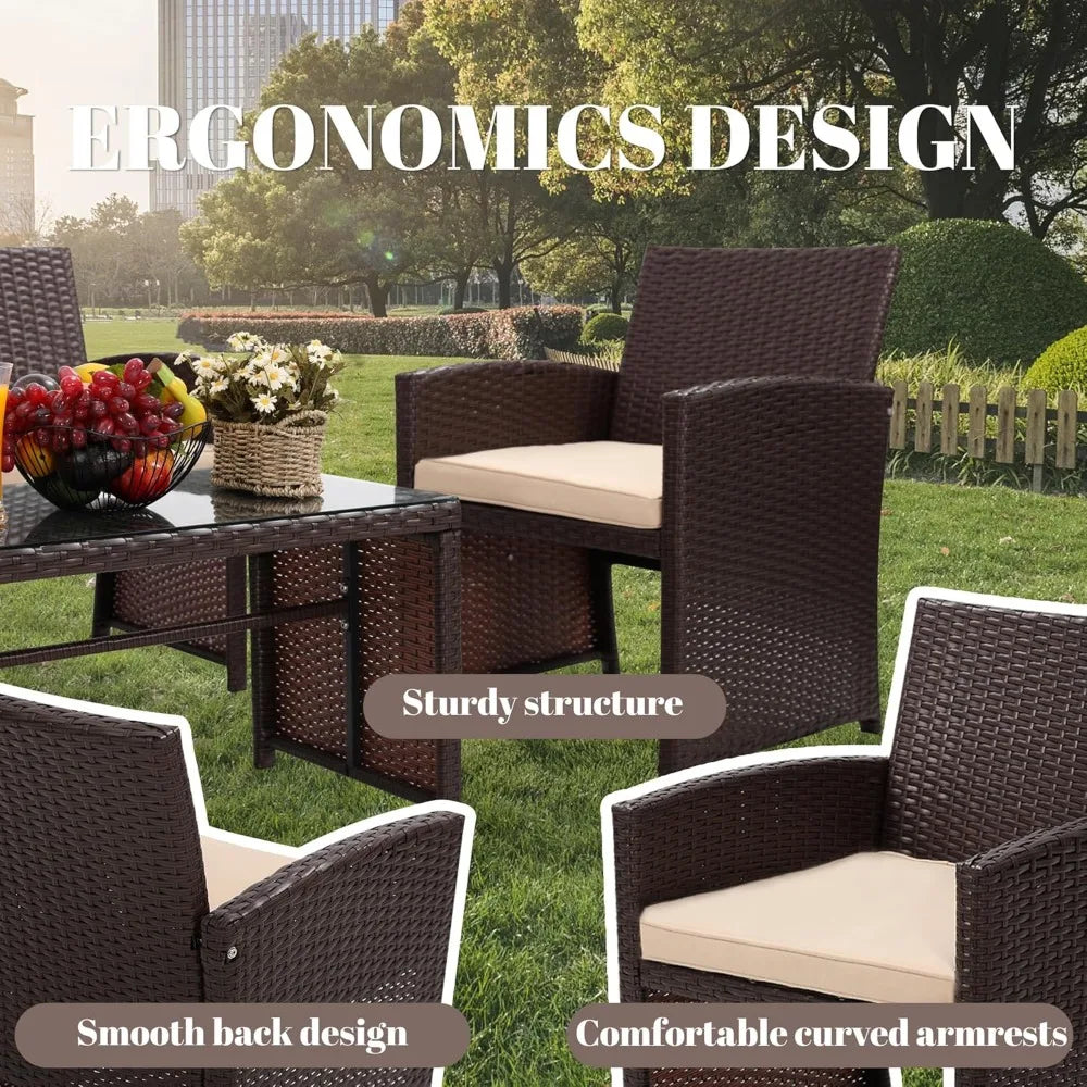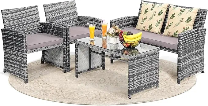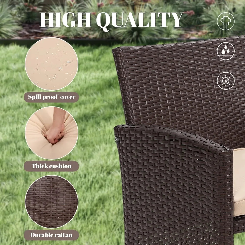 This patio furniture set stands out from typical offerings with its stylish design and high-quality materials. The cushions provide ultimate comfort while being easy to maintain; simply wipe them down with a damp cloth to keep them looking fresh. Enjoy the durability of the rattan that withstands outdoor elements, ensuring your investment remains intact season after season.