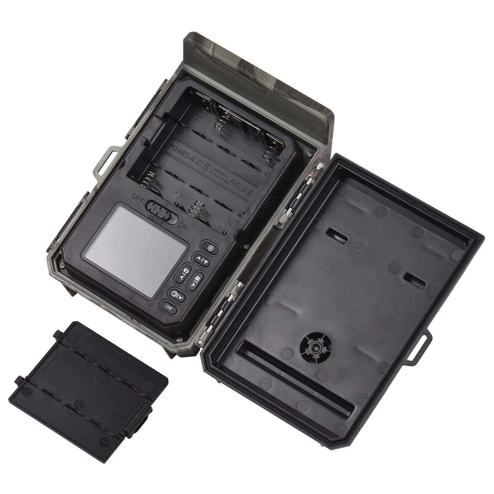 This solar trail camera is made from durable plastic, measuring 9x10x15cm (3.5x3.9x5.9in) and weighing just 480g (16.9oz), making it portable and easy to mount. The 2.0-inch TFT display allows for effortless navigation and setup, while its night vision capability reaches up to 60ft (20m), providing clear images in low light conditions.