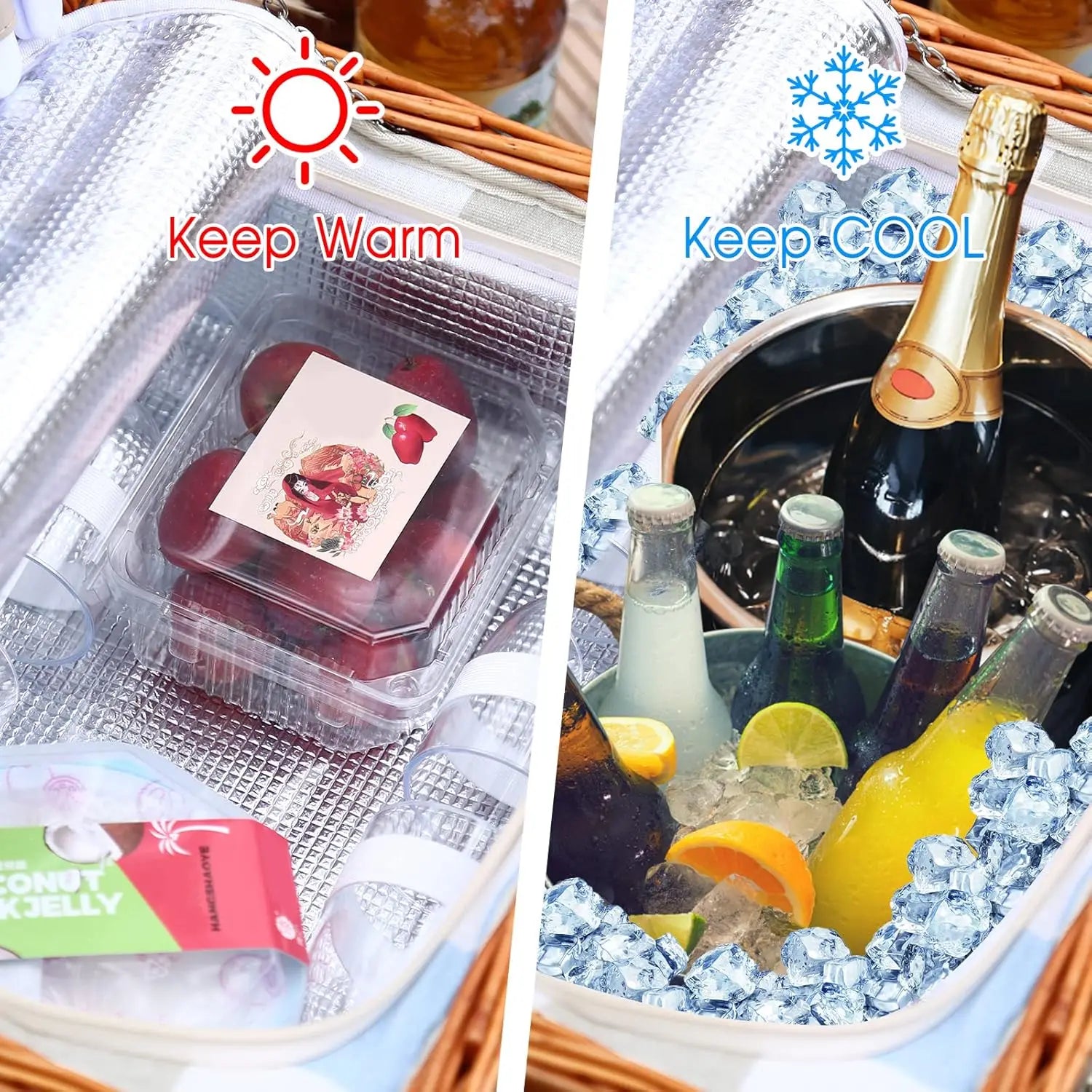 Wicker Picnic Basket for Four with Waterproof Blanket and Insulated Cooler
